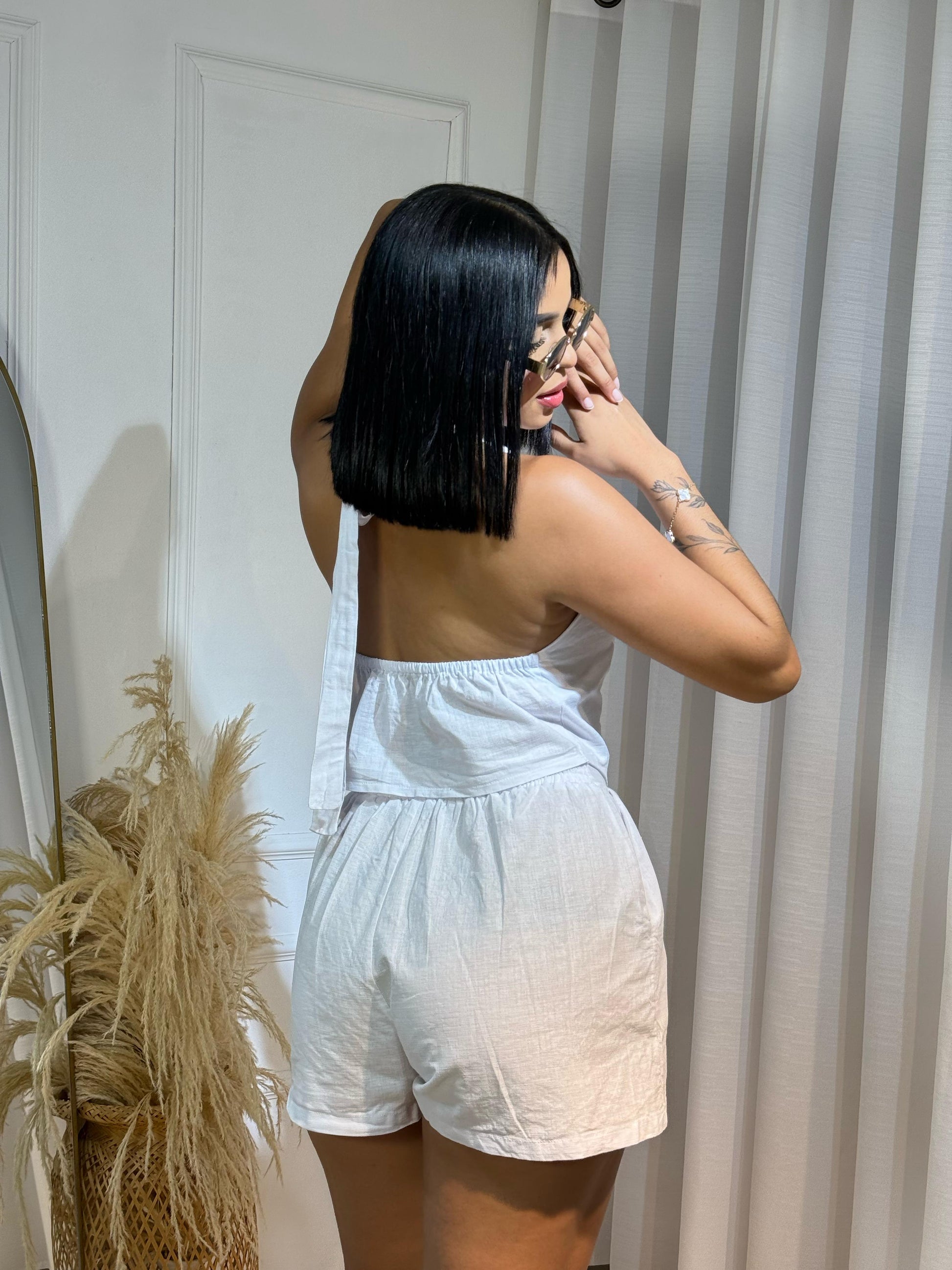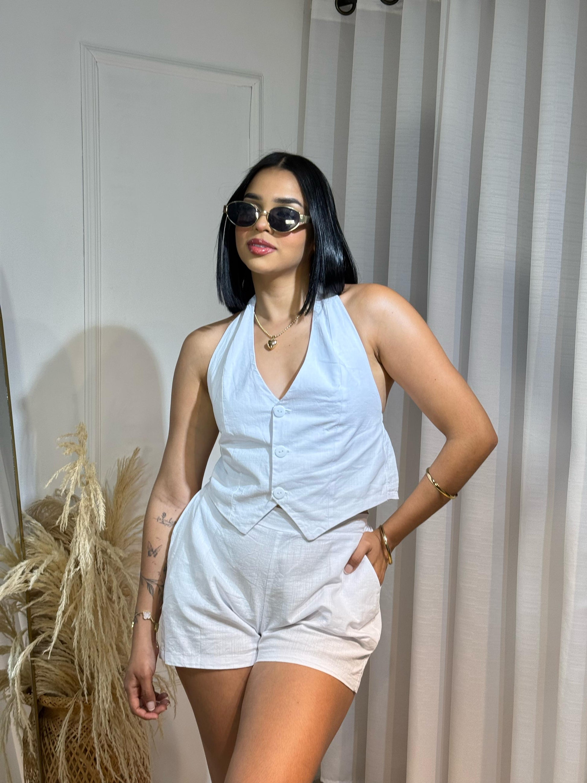 Luce fresca, elegante y autentica con nuestro set julieta, un conjunto compuesto por chaleco con botones frontales acompañado de un short de tiro alto, perfecto para dias soleados, escapadas al mar o tambien brunch con amigas