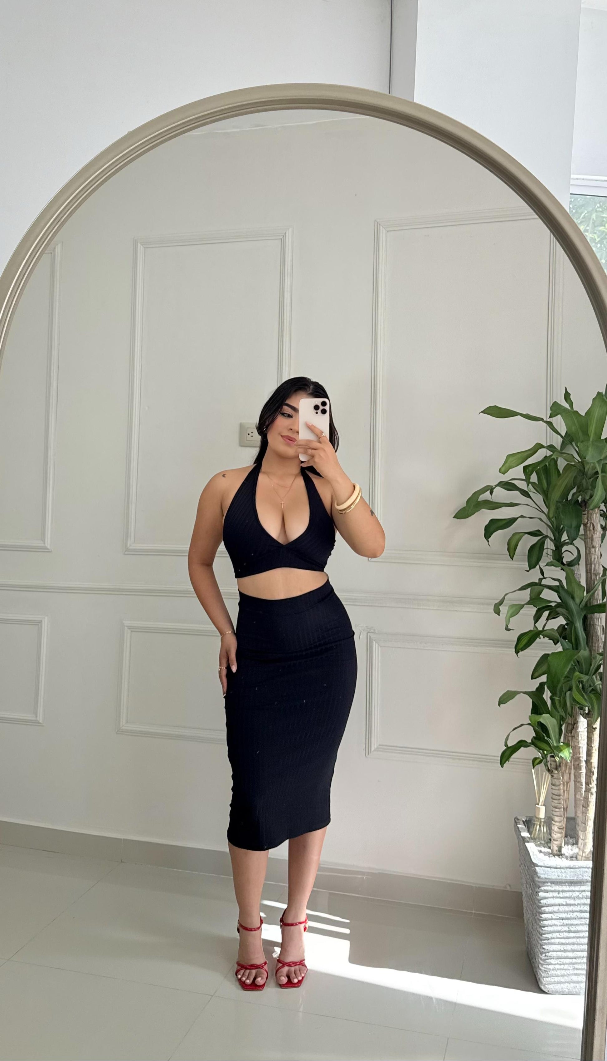 Luce fresca y con estilo con el set Lorena. Incluye falda larga y crop top en tela rib, suave, cómoda y con un fit perfecto para resaltar tu figura. Ideal para un look versátil que va del día a la noche sin perder elegancia.